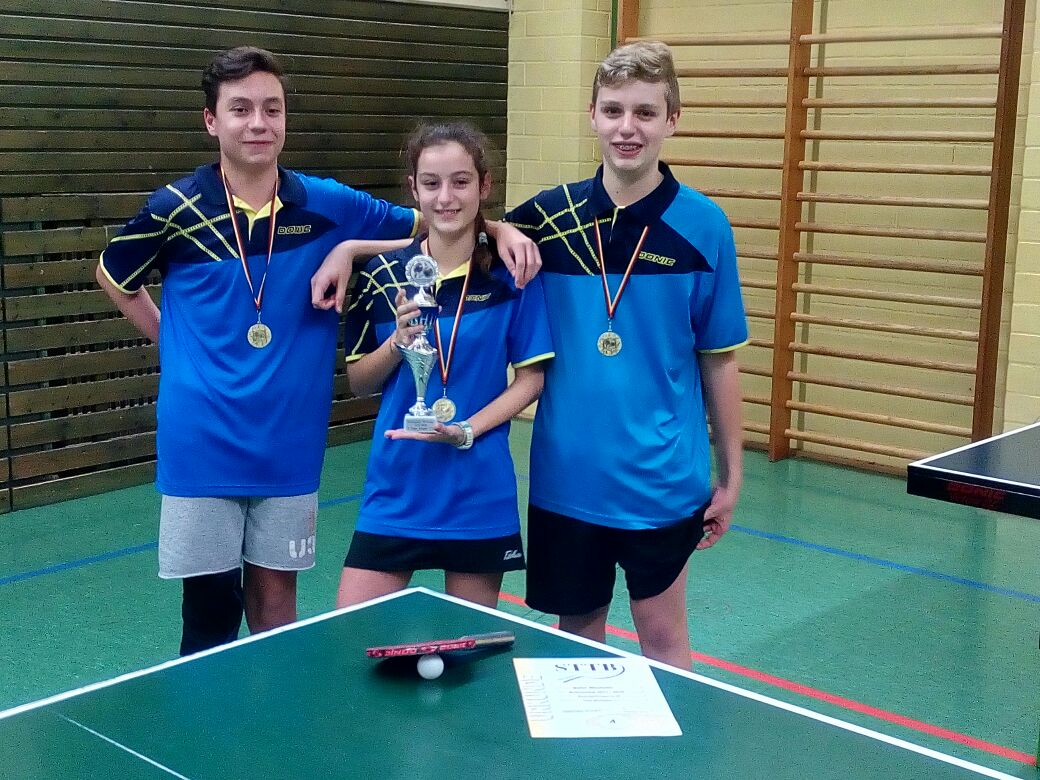des Halbfinales mussten unsere beiden Schülermannschaften gegeneinander antreten. Die etwas erfahreneren Spieler aus der ersten Schülermannschaft konnten sich gegen ihre Vereinskameraden durchsetzen und zogen somit ins Finale des Kreipokalwettbewerbs ein. Bei etwas mehr Glück in der Auslosung für das Halbfinale wäre auch ein Finale mit beiden Mannschaften der TTG Werbeln möglich gewesen. Im Finale traten dann Nick Leick, Jana Truar und Alexander Pohl gegen die Mannschaft des DJK Saarlouis-Roden an und gewannen das Spiel klar.